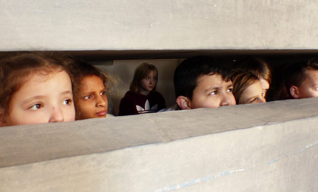 Der Schulhof der Hebelschule ist der tägliche erlebte Raum für die Kinder. Sie tanzen von Punkt zu Punkt, das machen sie gern. Da wo sie gerade sind, schauen sie sich um und entdecken ihre Umgebung neu: Ein Baum, ein Mülleimer, viele Kreise… Wie nimmt der kindliche Blick die Umgebung wahr, wie verändert sie sich durch ihre Augen? Wie möchten sie sich in ihrer Welt bewegen, tanzen?